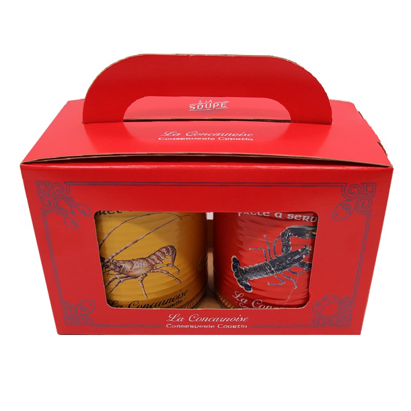 Dans un élégant coffret cadeau muni d'une poignée, découvrez deux savoureuses soupes : un suprême de langouste et une bisque de homard. C'est le cadeau idéal pour faire découvrir à vos proches nos délicieuses soupes cuisinées avec soin.